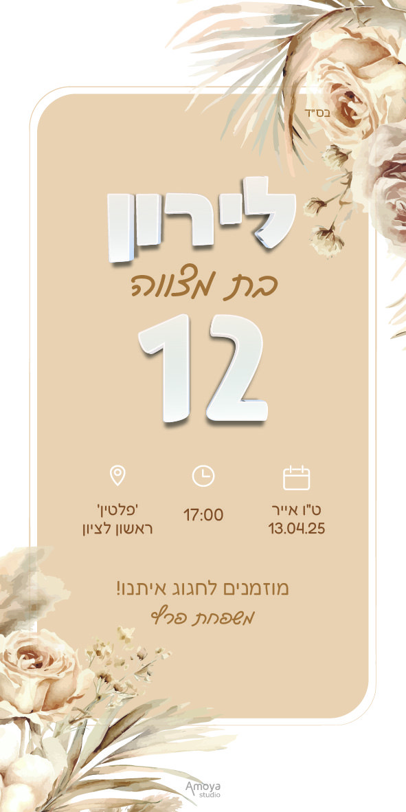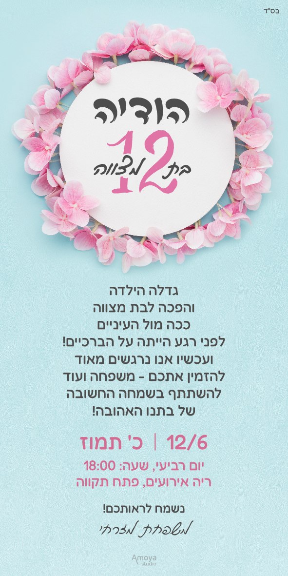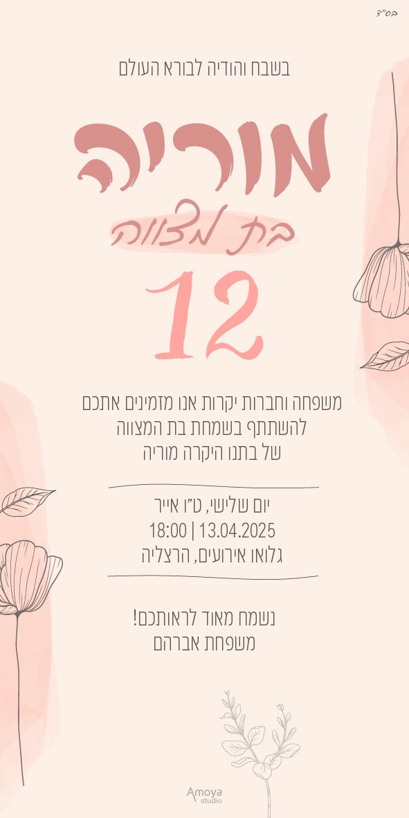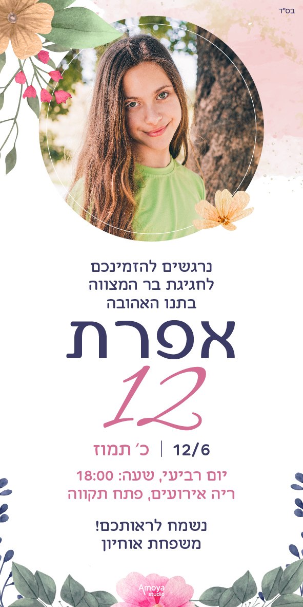 הזמנה מקצועית לבת מצווה – שיר פרחוני