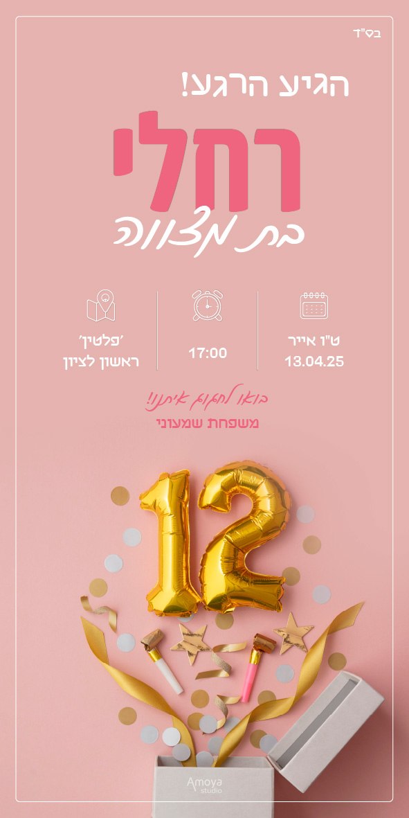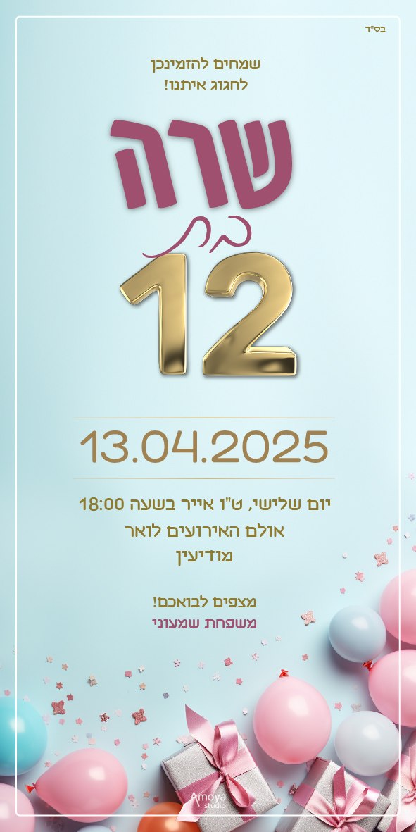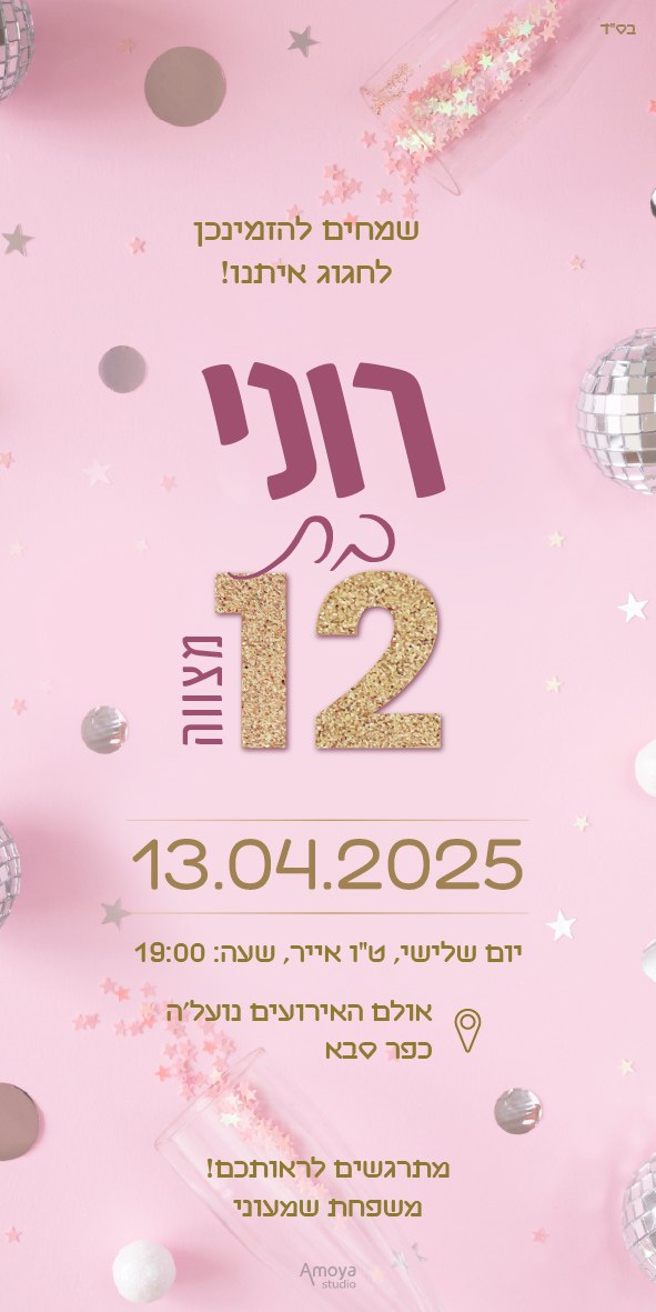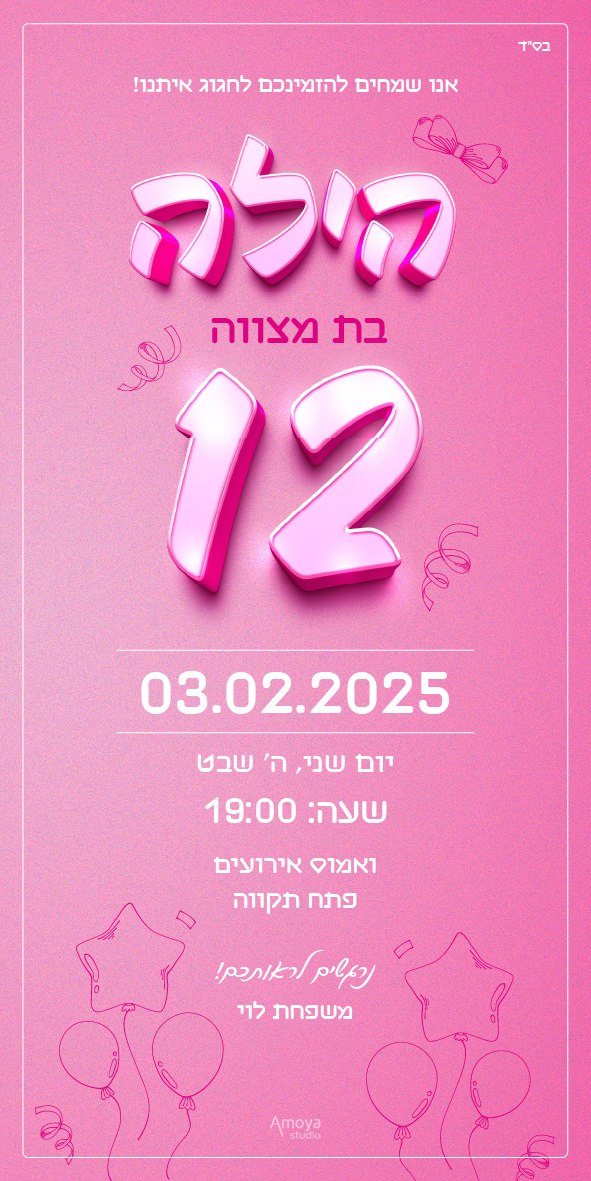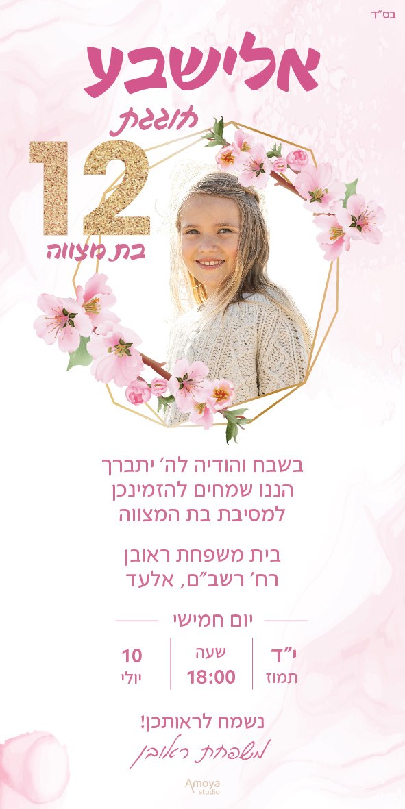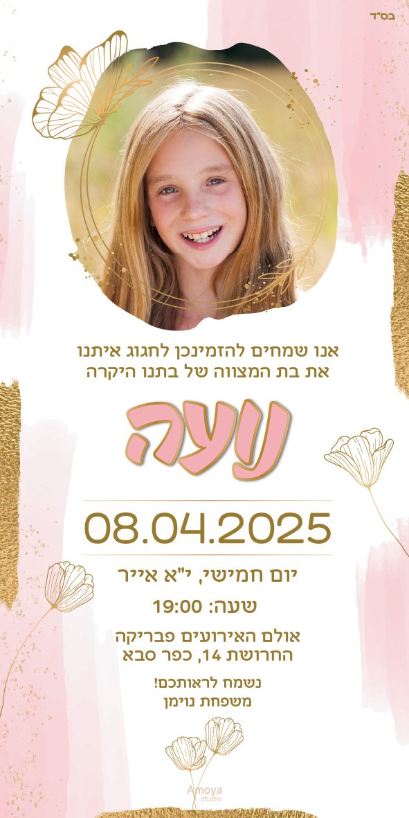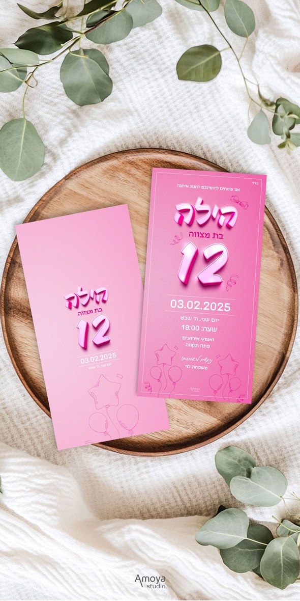 הזמנה מקצועית לבת מצווה – חגיגה 1