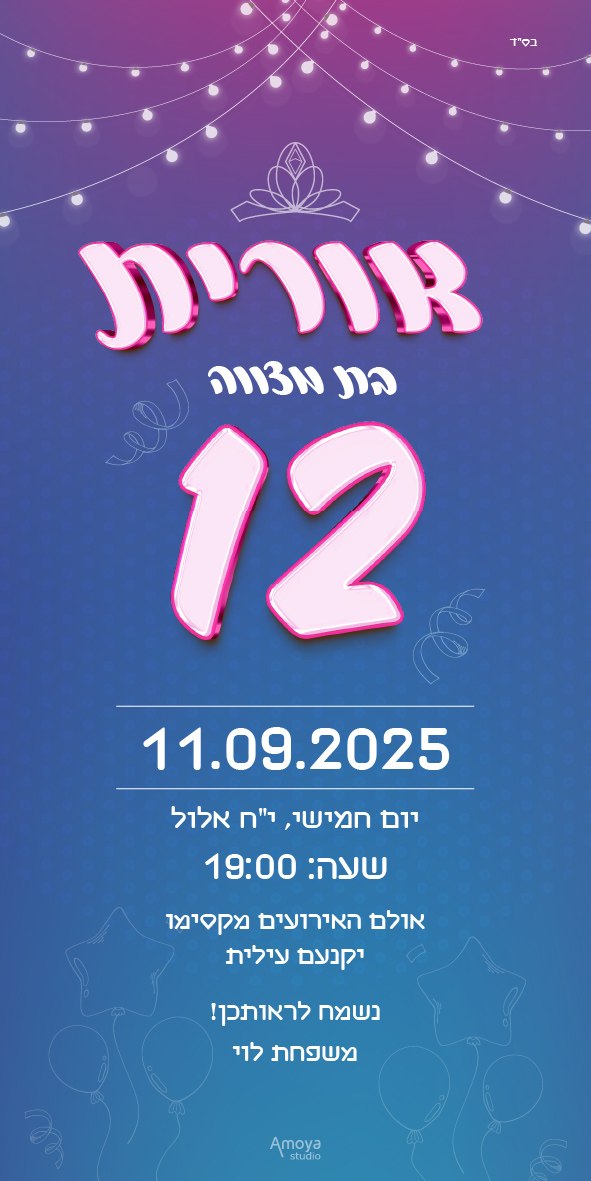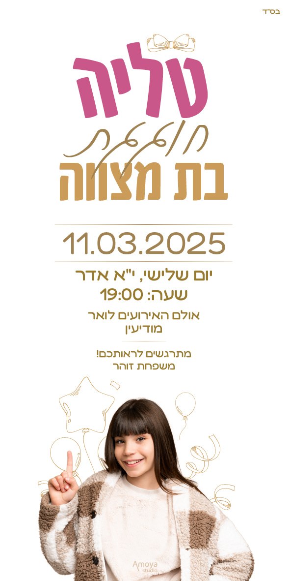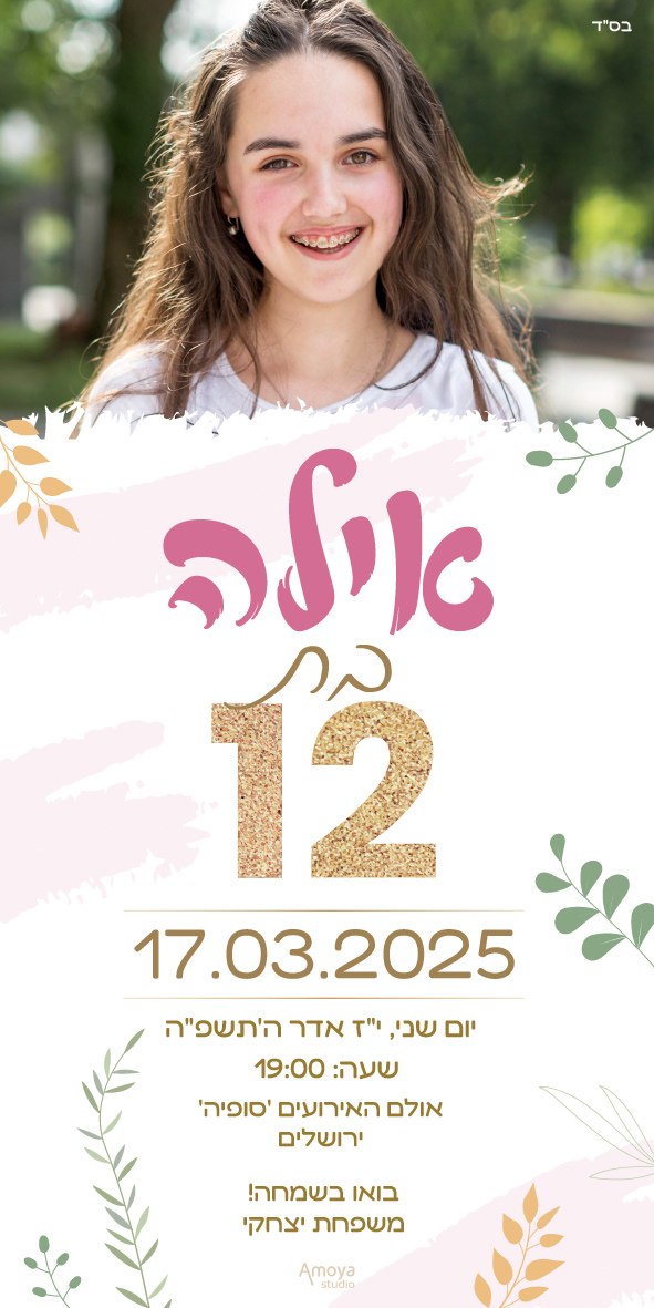 הזמנה מקצועית לבת מצווה – בוהושיק