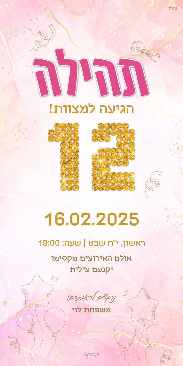 הזמנה מקצועית לבת מצווה – בלון נצנץ
