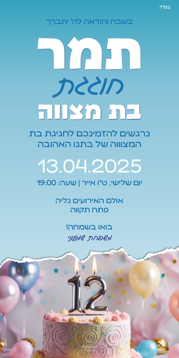 הזמנה מקצועית לבת מצווה – שמי תכלת