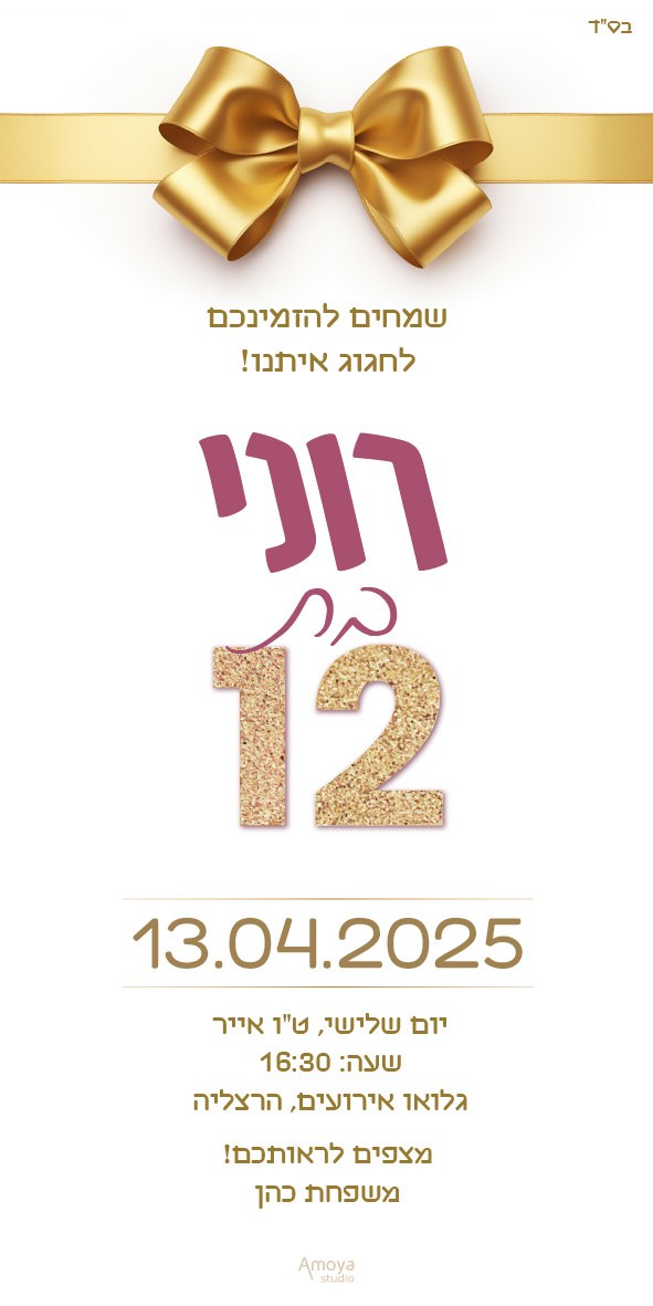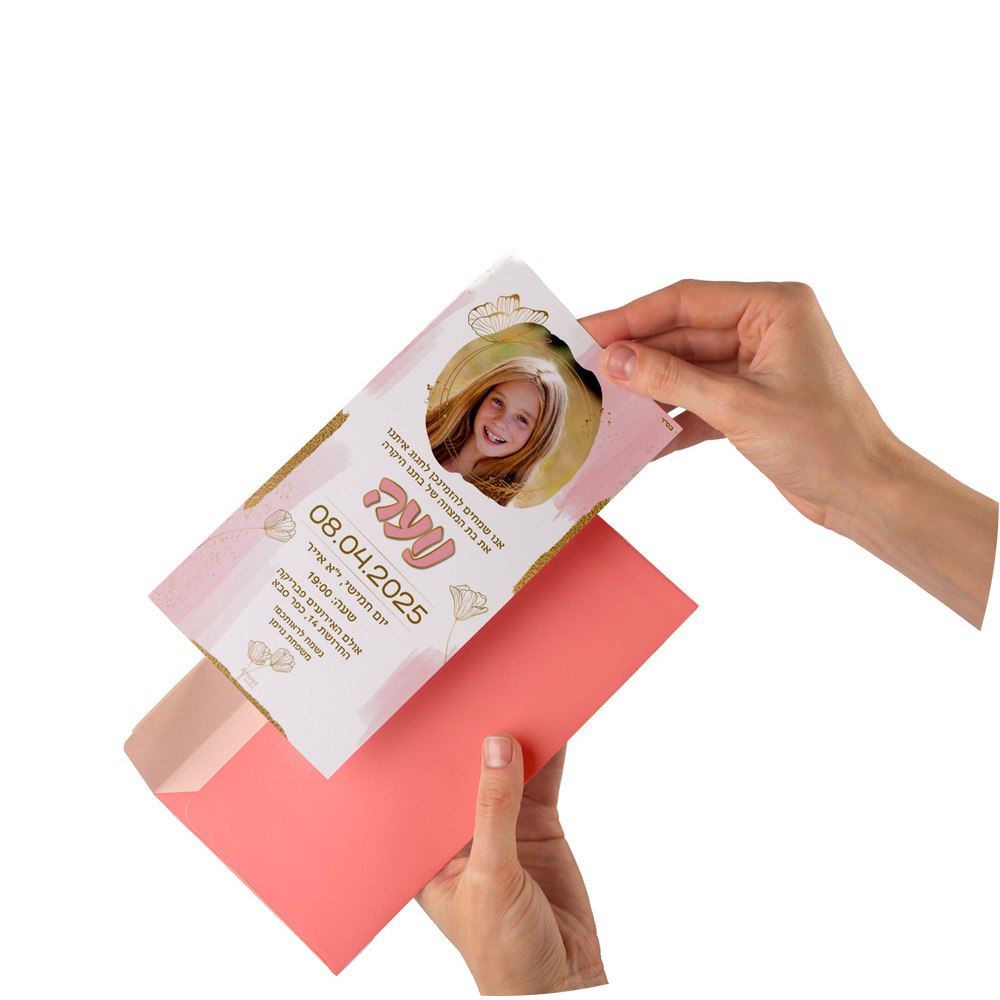 הזמנה מקצועית לבת מצווה – פפיון חגיגי