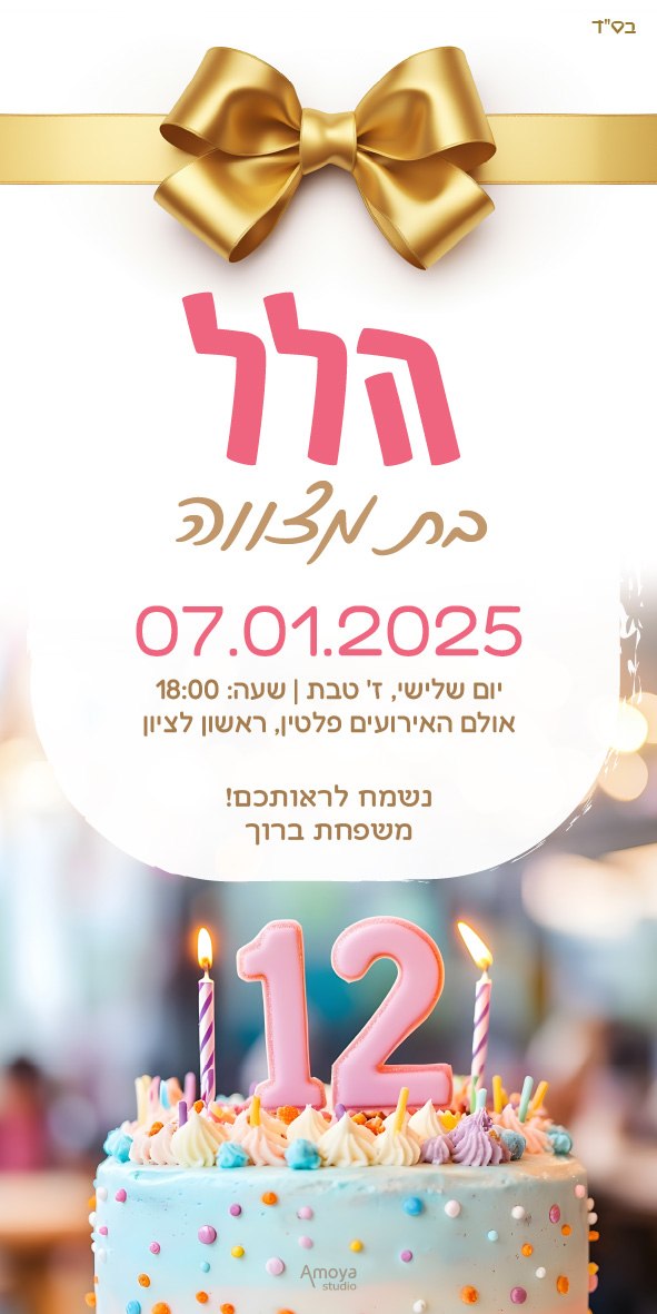 הזמנה מקצועית לבת מצווה – עוגה חגיגית