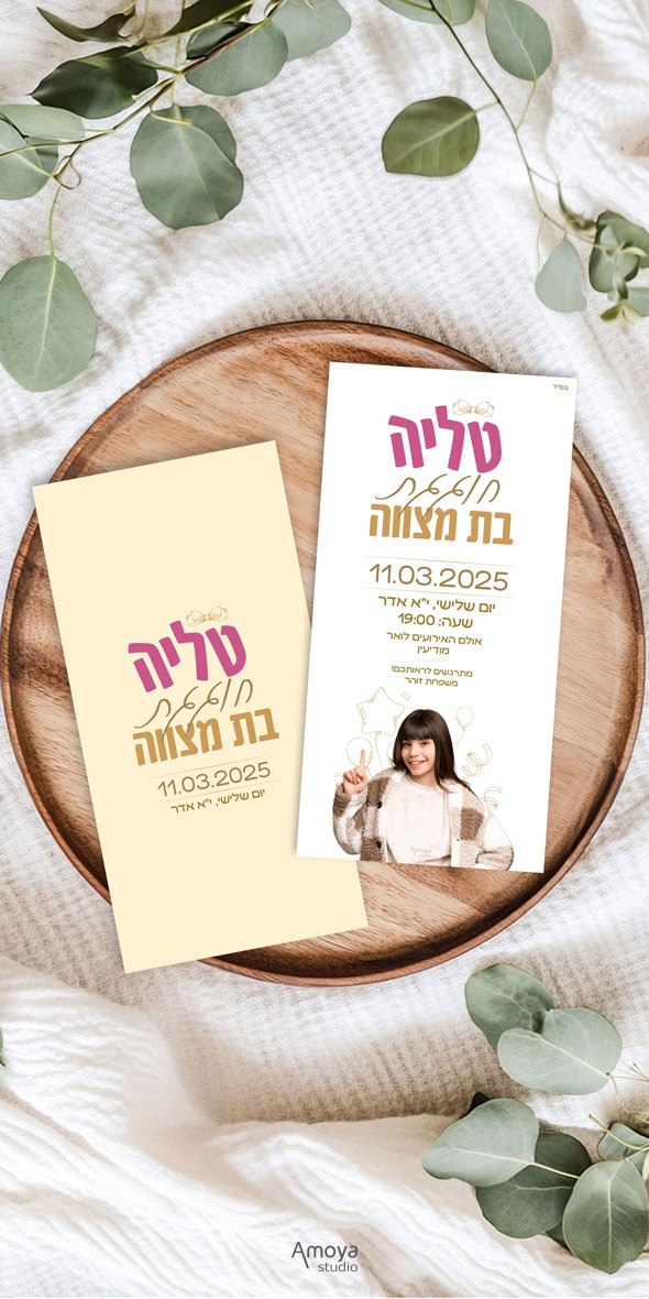 הזמנות לבת מצווה לדיגטל עם אפשרות לדפוס שני צדדים!