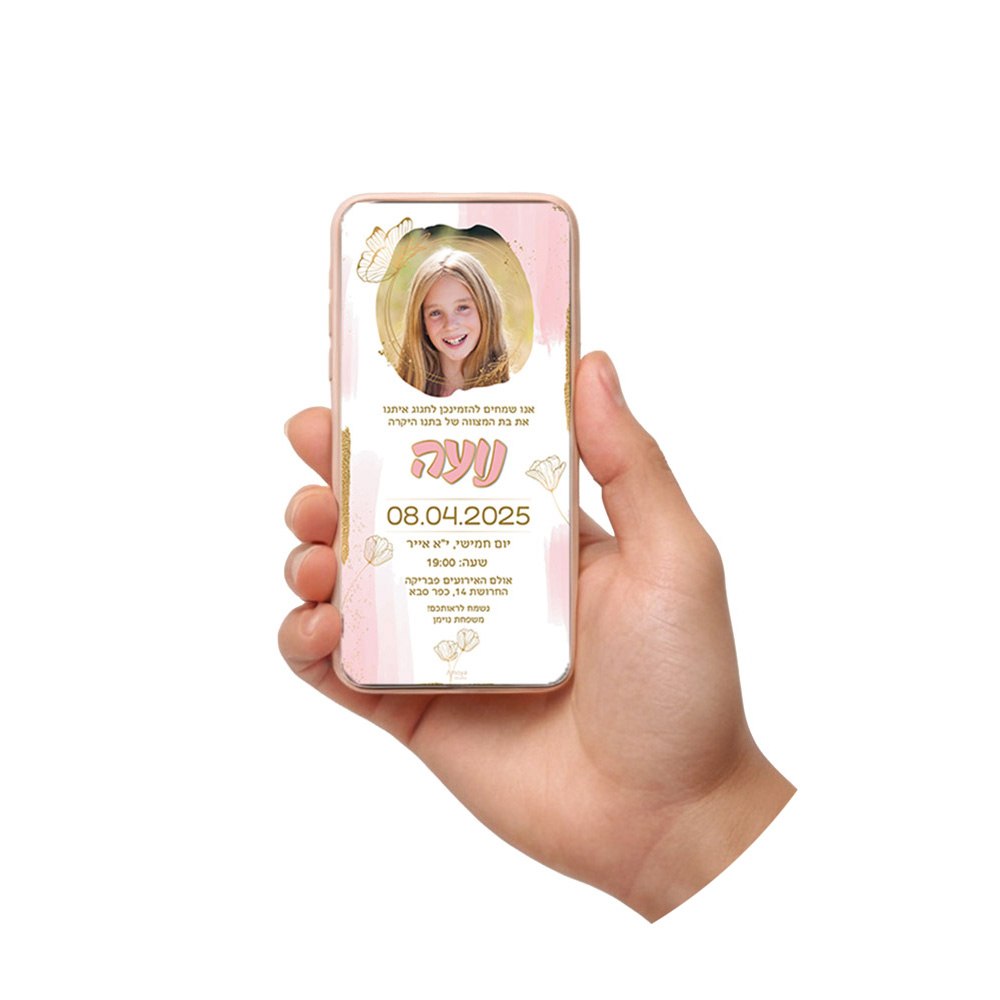 ✔ הזמנה דיגטלית מעוצבת – מותאמת לשליחה בנייד (בווצאטסאפ ואפשר גם במייל)